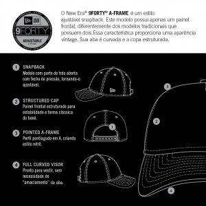 Confeccionado em tecido macio, recebe a clássica bandeira New Era® na lateral esquerda. Com um design moderno, esse cap possui aba curvada que protege o rosto dos raios solares, costuras reforçadas e fechamento strapback. O diferencial fica por conta da tecnologia adjustable, que garante um encaixe perfeito com muito conforto.