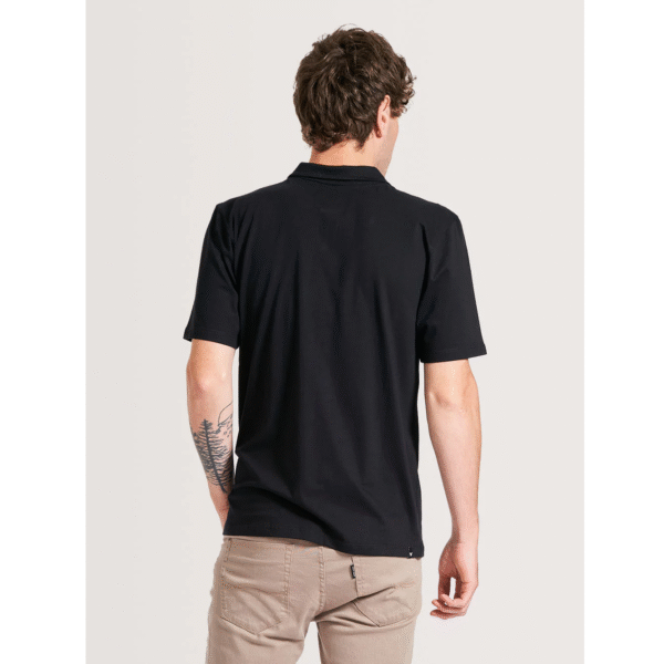 Polo Hang Loose Basic, possui abertura de peitilho com fechamento em 2 botões personalizados, aplicação de etiqueta no peito e etiqueta Hang Loose aplicada na barra.